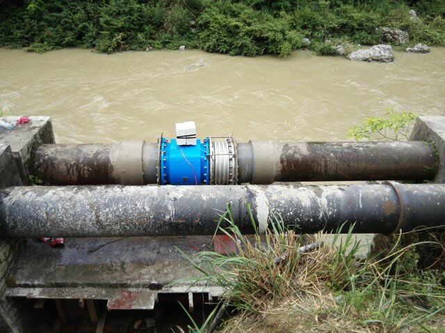 城鄉(xiāng)一體化供水計量電池供電電磁流量計安裝現(xiàn)場