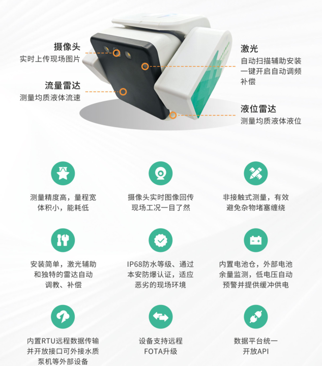多波段多普勒雷達(dá)(流量計)是一款非接觸式測量流體的流量產(chǎn)品,產(chǎn)品用于測量市政排水、下水道、暗渠道路、排水監(jiān)測、工業(yè)污染排放測量、廢水處理監(jiān)測、環(huán)保排污口監(jiān)測、江河流監(jiān)測、灌溉水量監(jiān)測、生態(tài)放流監(jiān)測等,獲得測量流體的水位、流速、流量。